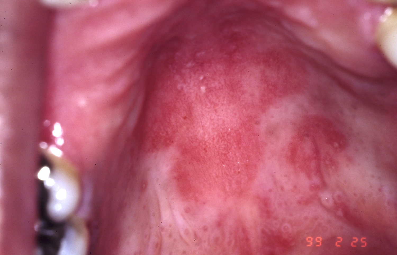 Erythematous Candidiasis, hard palate Fungal disease Copyright © 1996-2000 David Reznik, D.D.S. All Rights Reserved.
